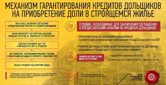 АО «Фонд гарантирования жилищного строительства» в рамках гарантирования жилищного строительства внедрило механизм гарантирования займов дольщиков на приобретение жилья, где имеется гарантия.